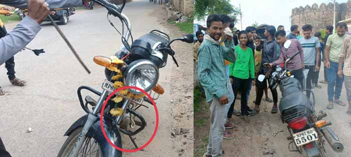 शहर में कल मंगलवार के दोपहर उस वक्त बीच सड़क पर डर का माहौल बन गया जब एक बाइक सवार व्यक्ति अपने घर से बाजार की ओर जा रहा था तभी बाइक में अचानक नागराज सामने से प्रकट हो गए और आनन-फानन में बाइक सवार ने बाइक सड़क पर छोड़ दी और और नीचे उतर गया वह बाइक सवार बहुत घबरा गया और सांप को निकालने का प्रयास करता रहा लेकिन वह नहीं निकाल पाया ऐसे में वहां से निकल रहे रहा राहगीर सोच में पड़ गए कि आखिर क्या हो गया तब देखा तो बाइक में उड़ने वाले नागराज छुपे बैठे थे तब वहां से गुजर रहे बाइक सवार बंटी खान ने अपनी बाइक से उतर कर जब देखा तो परेशान हो रहे बाइक चालक की बाइक में छुपा बैठा उड़ना सांप को बड़ी मशक्कत के बाद सांप को बाइक में ढूंढने के बाद बाहर निकाला. वहीं इस दौरान सांप को पकड़ते हुए देखने के लिए भीड़ जमा हो गई. हालांकि इस दौरान किसी को भी कोई हानि नहीं हुई और सांप को बाइक से निकाल दिया।