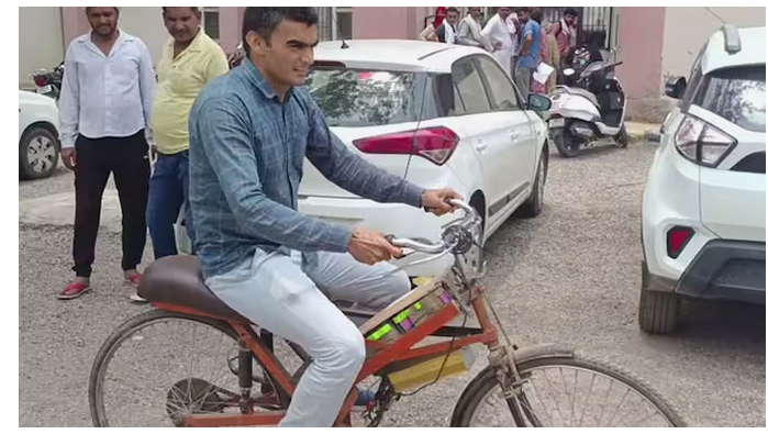 रिक्शा के टायर, रिम, चेन से बना दी इलेक्ट्रिक साइकिल
