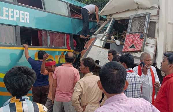 बस और कंटेनर की भिड़ंत में तीन की मौत, एक दर्जन घायल