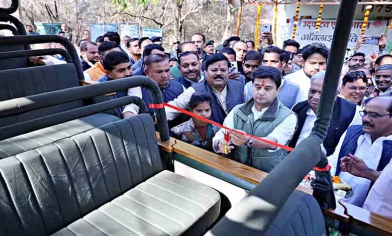 माधव नेशनल टाइगर रिजर्व में टाइगर सफारी वाहन को केंद्रीय मंत्री सिंधिया दिखाई हरी झंडी