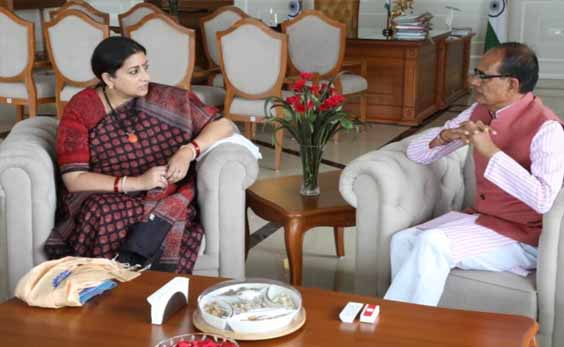 केंद्रीय मंत्री स्मृति इरानी पहुंचीं भोपाल, सीएम शिवराज से की मुलाकात