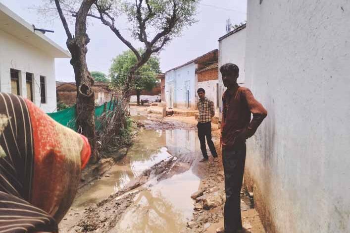 मेन रोड पर 2 फुट भरा पानी ग्रमीणो को निकलने में हो रही परेशानी