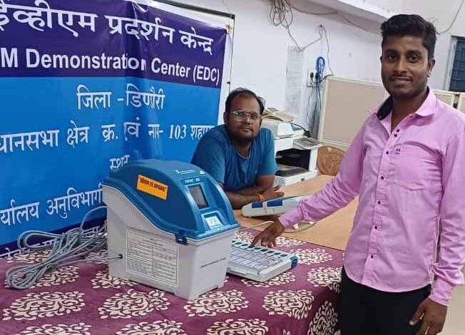 अवेयरनेस कैम्पेनई व्हीएम-व्हीव्हीपेट मशीन की बारीकियां जानने मतदाता पहुँच रहे प्रदर्शन केंद्र
