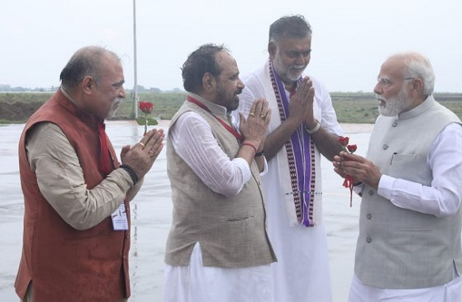 प्रधानमंत्री मोदी का शहडोल जिले में लालपुर हेलीपेड पर आत्मीय स्वागत